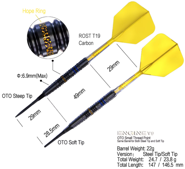 Cette pointe permet de minimiser la différence entre les pointes souples et les pointes en acier lors de la conversion, de réduire la déviation, d'assurer une prise en main et des sensations identiques, d'aider les joueurs à éviter l'effet de la conversion et à obtenir de bonnes performances en jeu : ce sont les points OTO.
