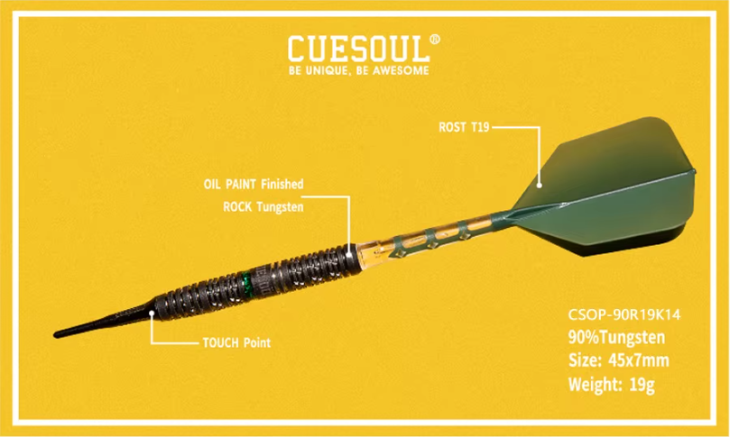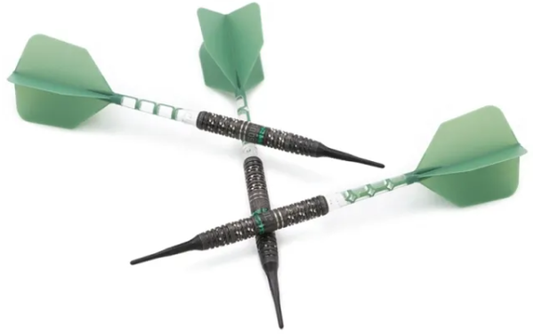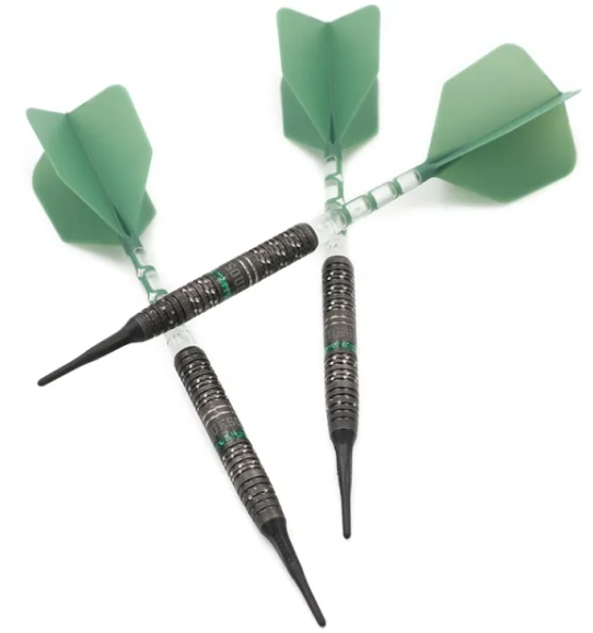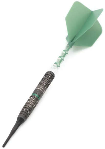 3 fléchettes 90% Tungsten 19g avec un style "BRAKE DISK", finition peinture à l'huile, offre un Super Grip, décoré d'un anneau Green Hope.