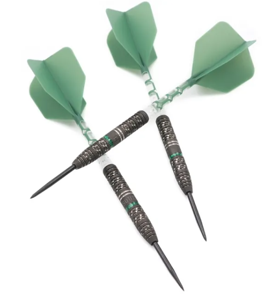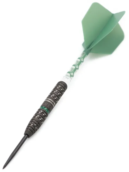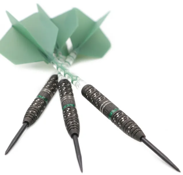 3 fléchettes 90% Tungsten 21g avec un style "BRAKE DISK", finition peinture à l'huile, offre un Super Grip, décoré d'un anneau Green Hope.