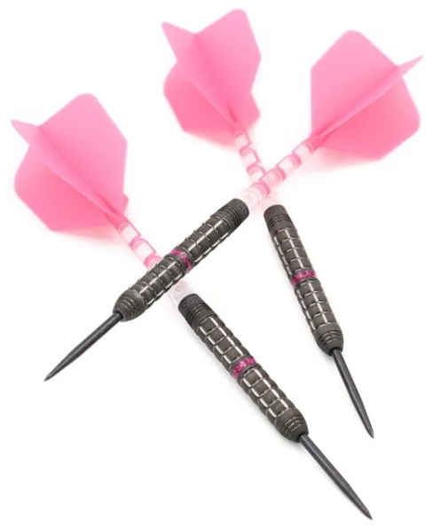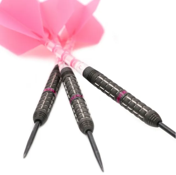 3 fléchettes 90% Tungsten 23g avec un style "SEAT", finition peinture à l'huile, offre un Super Grip, décoré d'un anneau Pink Hope.
