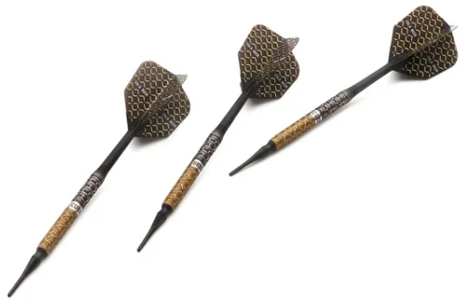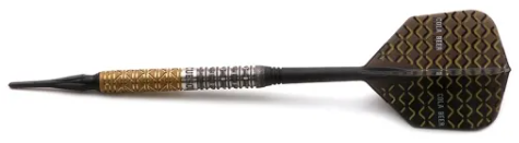 3 fléchettes 90% Tungsten 19g avec un style élégant, finition peinture à l'huile Gold/Gun Grey, offre un Super Grip.