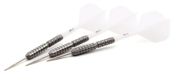 3 fléchettes CUESOUL 90% Tungsten 22 g, avec finition givrée, offre une super prise en main.