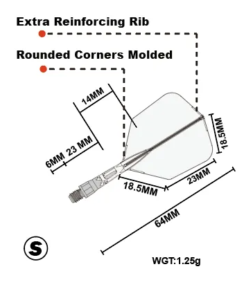 S : Longueur totale 64mm avec une longueur de tige de 23mm, 1,25g