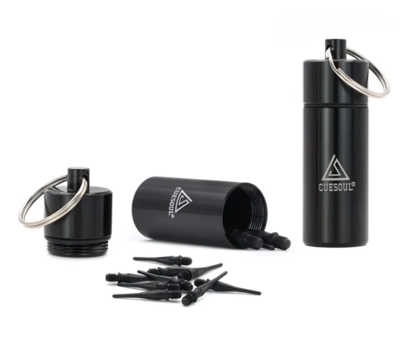 Ce tube peut contenir des accessoires de fléchettes, comme des pointes souples (jusqu'à 12), des rondelles pour tiges, des joints toriques et autres accessoires.