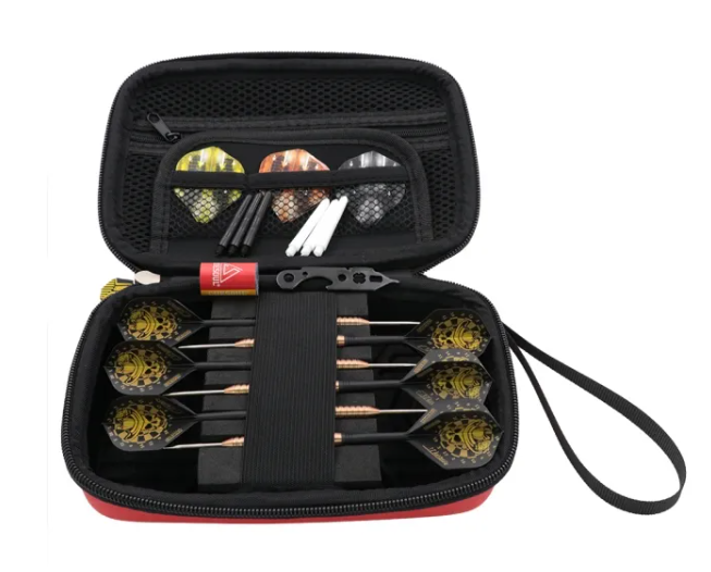 La coque en EVA solide moulée offre une bonne prise en main,maintient la rigidité et protège les fléchettes et les accessoires à l'intérieur des chutes et des impacts.Une couche de velours avec 3 poches a été ajoutée pour contenir les vols pliables et pour être résistant aux rayures.