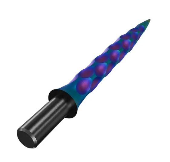 Revêtement en titane et forme alvéolé pour une meilleure prise en main, assurant un maintien optimal et minimisant l'endommagement de la fibre de sisal lors de l'impact sur la cible.