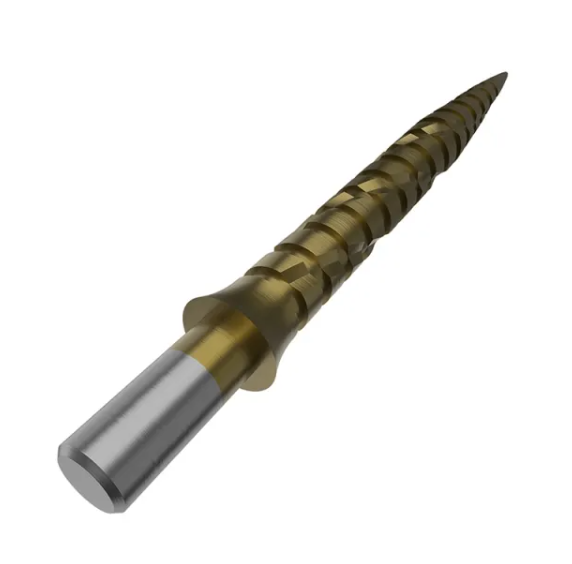 Revêtement en titane et forme spirale pour une meilleure prise en main, assurant un maintien optimal et minimisant l'endommagement de la fibre de sisal lors de l'impact sur la cible.