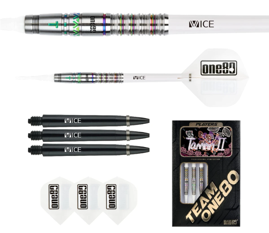3 fléchettes 90% Tungsten 18g avec design argenté avec finitions Rainbow